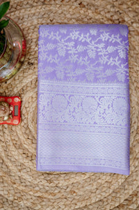 • Elegant lavender base with intricate silver zari motifs