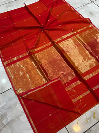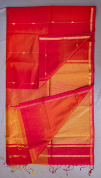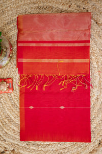 RADIANT RED ORANGE PURE HANDLOOM MAHESHWARI COTTON SILK SAREE